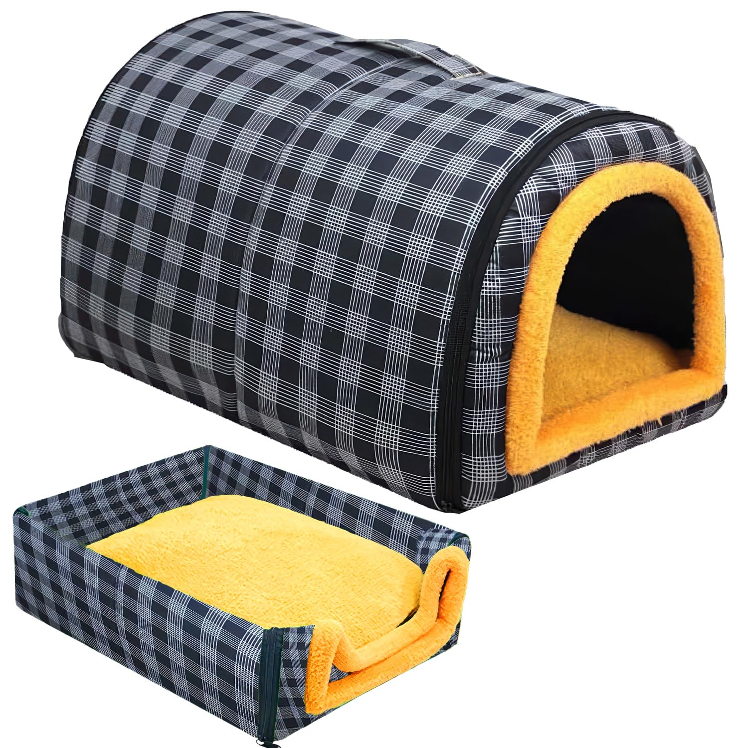 • All-Season Convertible Design: This pet bed offers a versatile 2-in-1 design that allows it to be used as an enclosed warm house in colder months or an open breathable bed during warmer seasons. Whether your pet needs a cozy retreat or a spacious lounging area, this bed adapts to their comfort all year round.